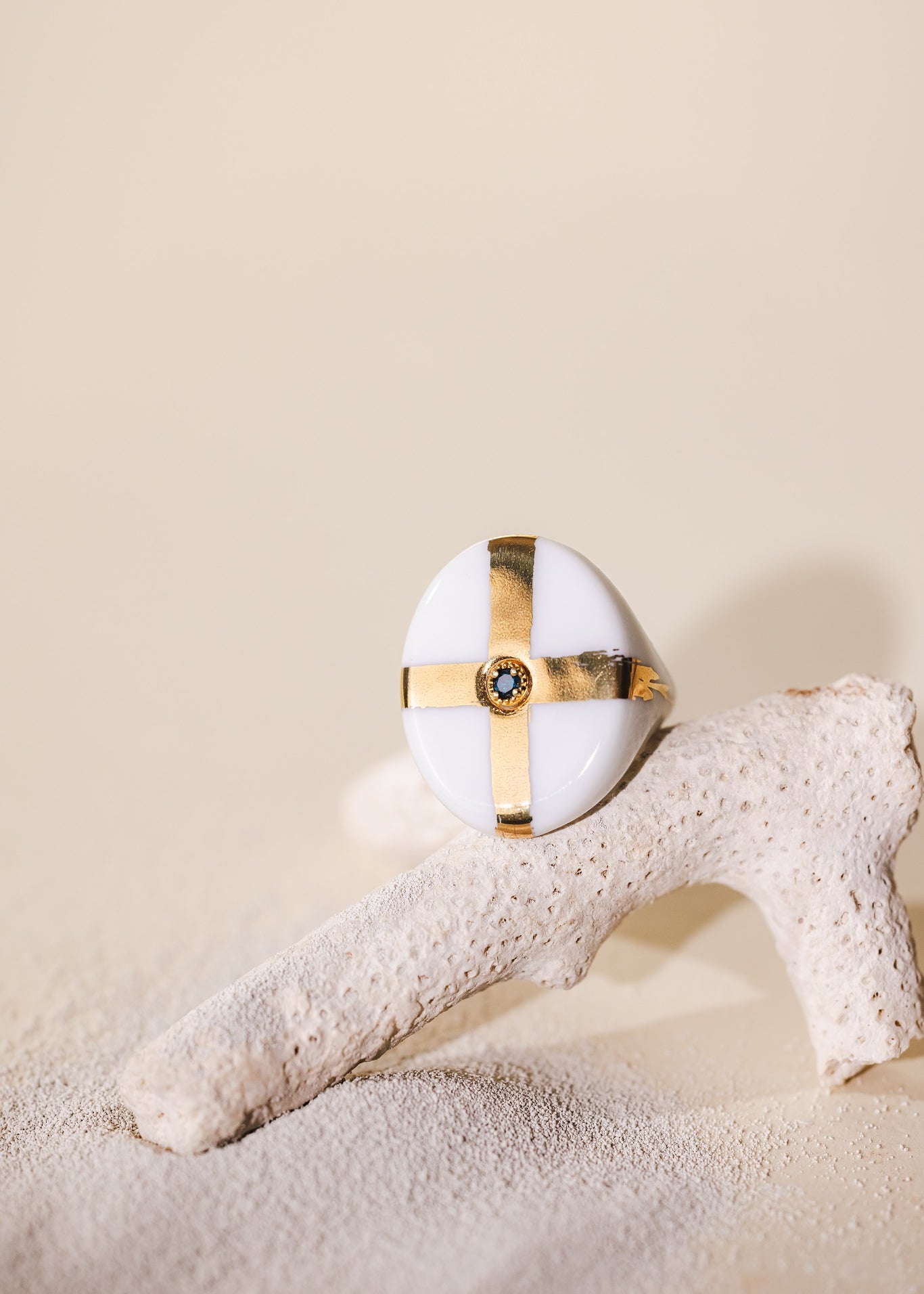 La bague THE CROSS impose son allure avec une simplicité puissante : une croix dorée épurée, symbole universel chargé de sens.